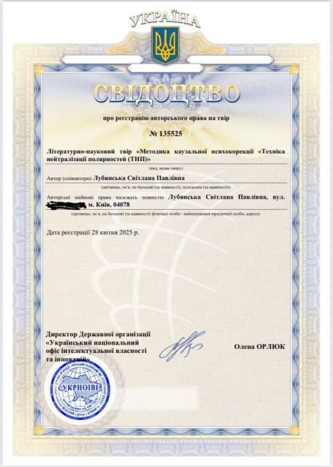 "Техника нейтрализации полярностей (ТНП)" официально зарегистрировано (государственное свидетельство №135525)